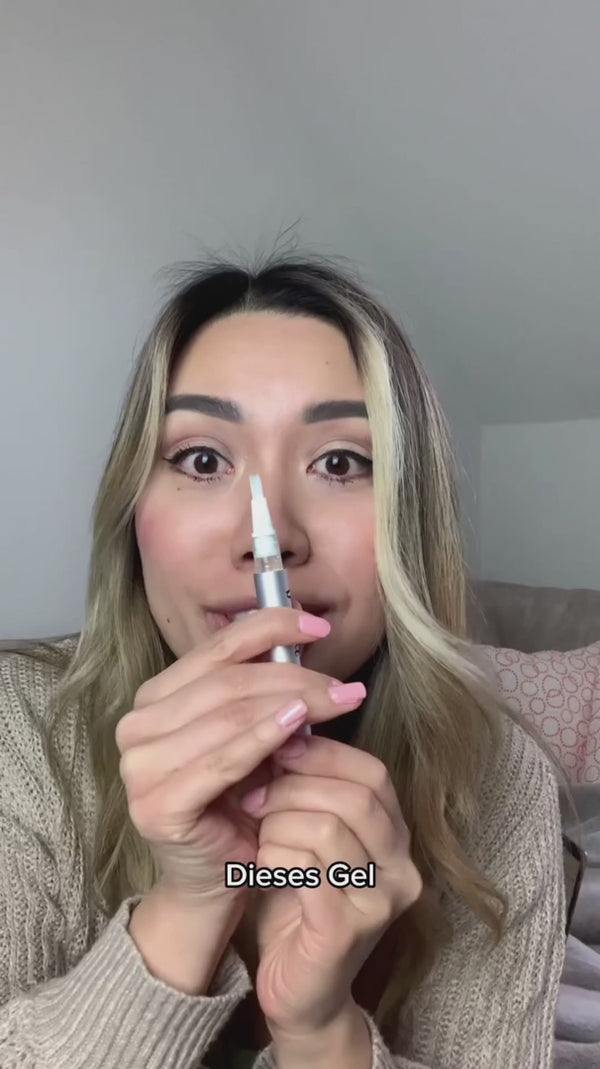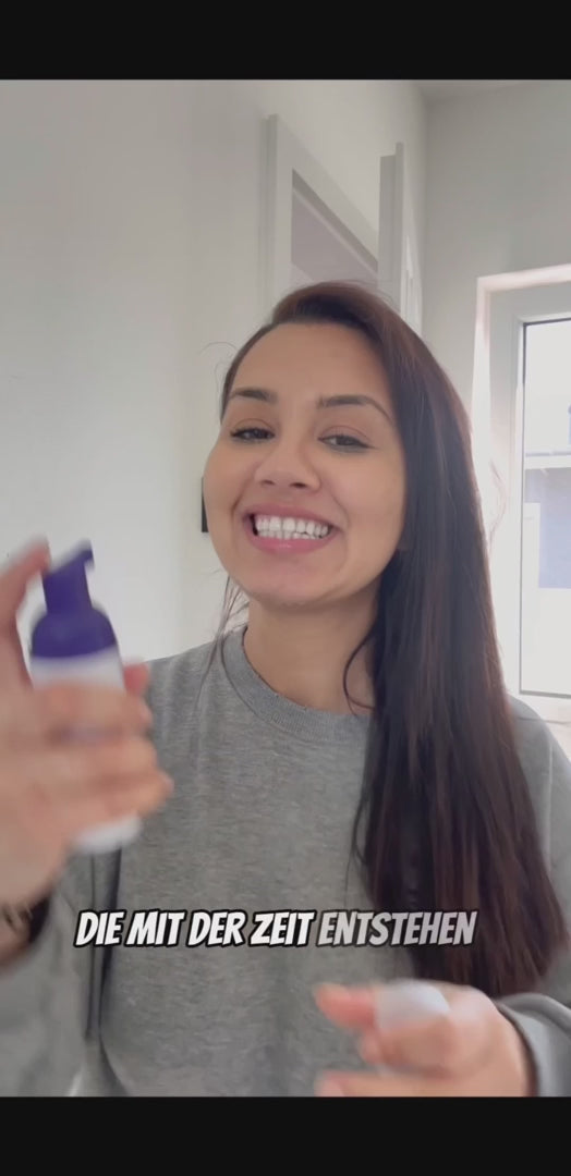 Ons kleurcorrectie serum neutraliseert verkleuringen op de tanden vanaf het allereerste gebruik. De paarse kleur van het serum, die werkt als een complementaire kleur voor geel, blokkeert effectief de kleurpigmentatie van de tanden. Zodra het serum wordt aangebracht, worden de geeltinten gericht geneutraliseerd. Dit serum kenmerkt zich niet alleen door zijn vermogen om tanden snel witter te maken, maar intensiveert en verlengt ook het effect van het bleken. Je tanden blijven dus langer stralend wit, terwijl de gelige verkleuringen worden onderdrukt.