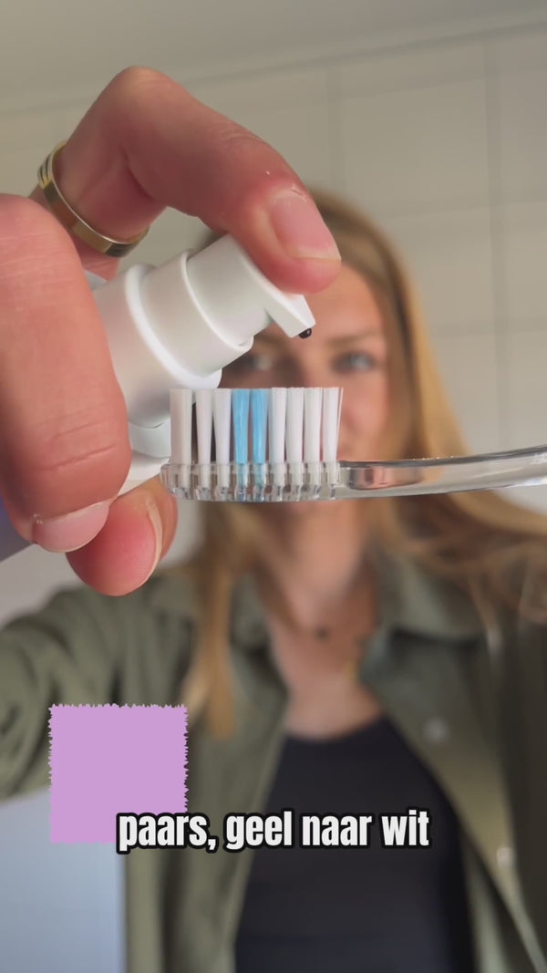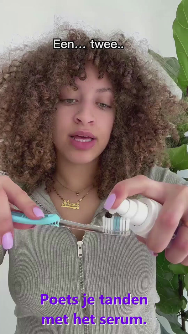 Ik ben mega blij met het serum. Je doet het paarse serum gewoon op je tandenborstel en poetst normaal. Het is super makkelijk en smaakt ook nog eens goed!